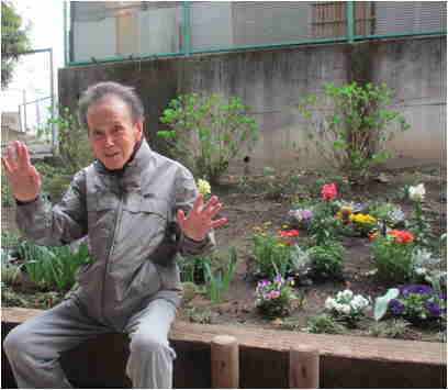 こもれびの郷前庭は職員有志の「ガーデンプロジェクト」のメンバーが
